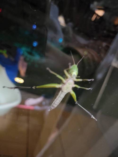 昨日の夜、家の窓に(外側)ずーっとくっ付いて離れないバッタ!?がいました。