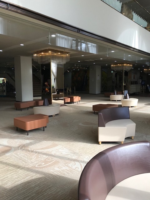 ホテルのロビーで( ゜∇^)] モシモシ