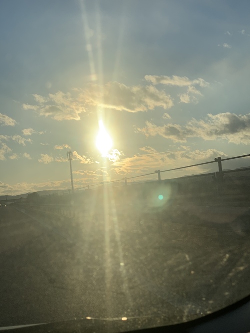 でね、帰りの日の眩しい事、眩しい事