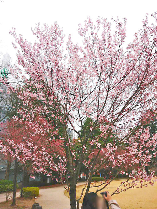 本日の昼頃、錦町公園を通ったら桜が一本だけ五分咲き位になってましたよーー