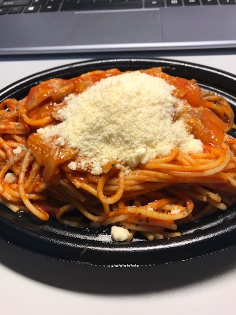 スタッフさんに買ってきてもらったスーパーのパスタも