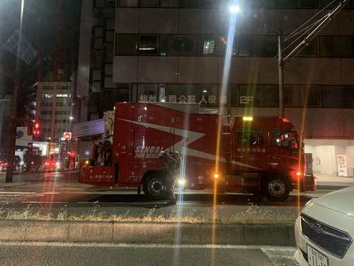 昨日もね、帰りに木町のあたりで沢山の消防車が来ていて消防士がガスマスクみたいのを着けて物々しい感じでした