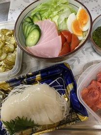 「お煮しめ」っ言ったら叱られるかもしれませんけど、、、煮物の一品の「タケノコ」が「亀🐢」の「甲羅(こうら)」に形どられ。。。びっくら😳